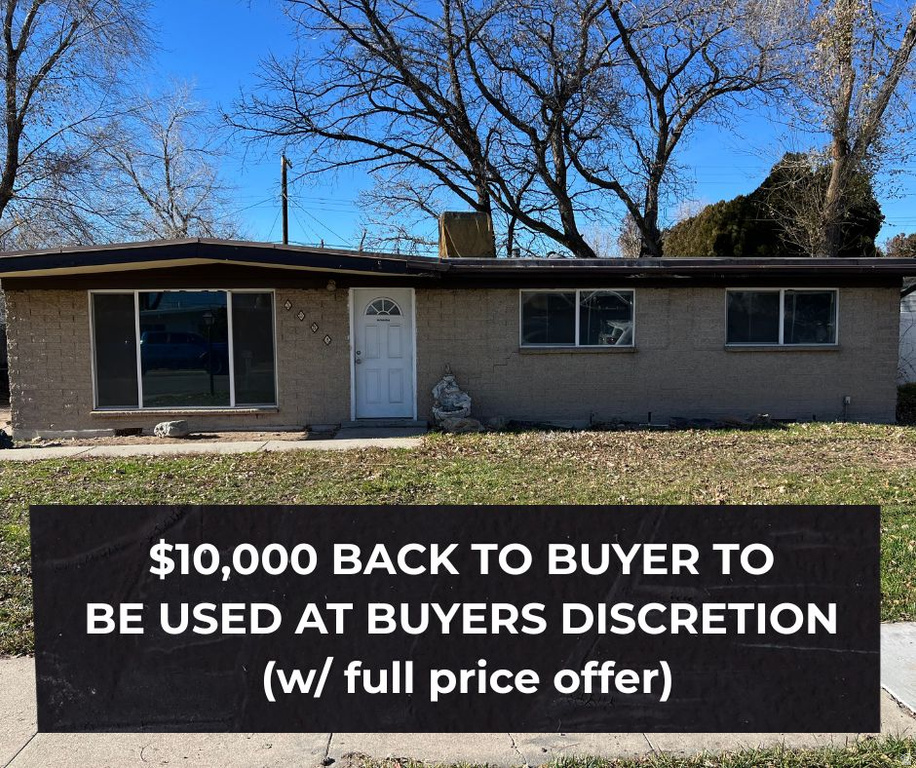 NEW CARPET, UPDATED FLOORING, SOME NEW PAINT. Good location. Close to shopping, Bangerter and the Maverick Center. Nice private backyard, fully fenced. Extra storage in the back a small add-on and a shed. Hardwood floor under carpet. Measurements a courtesy buyer to verify. With full price offer, seller is willing to give back $10,000 to be used at buyers discretion.