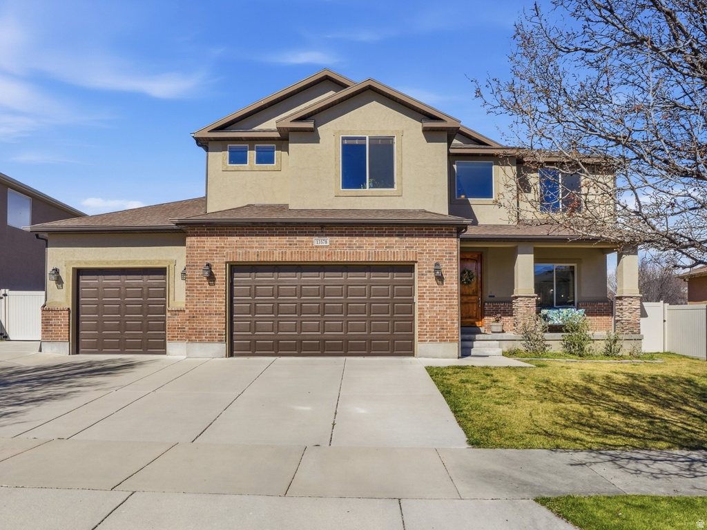 You don't want to miss this beautiful home in a prime location-near parks, schools, shopping, and dining, with easy access to Mountain View Corridor and Mountain View Village. With over 4,000 sq ft of well-maintained living space, there's plenty of room to spread out. The main level offers bright, open living areas and a kitchen with granite countertops and stainless-steel appliances. Upstairs you'll find five bedrooms, including a spacious primary suite with vaulted ceilings, a walk-in closet, a private bathroom with dual sinks, and a separate tub and shower. The finished basement offers a 2-bedroom mother-in-law apartment equipped with a full second kitchen, a large living area, a bathroom, a laundry room, and ample storage space. Step outside to the fully fenced and landscaped backyard featuring a pergola-covered patio and a basketball court. The 3-car garage with epoxy floors and RV parking adds even more convenience. The home also includes two newer furnaces and A/C units, along with two water heaters installed in 2023.